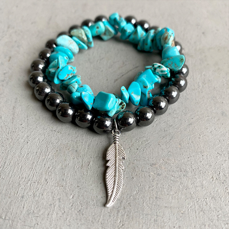 Western style jewelry multi-layered bracelet set turquoise beaded cross sunflower bracelet