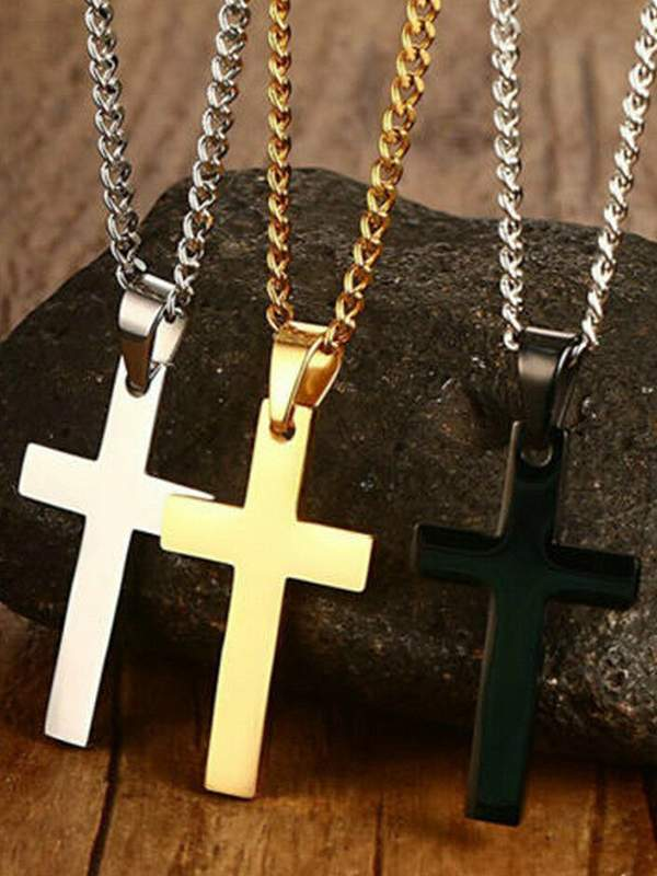 Stainless Steel Personality Casual Cross Long Pendant Necklace