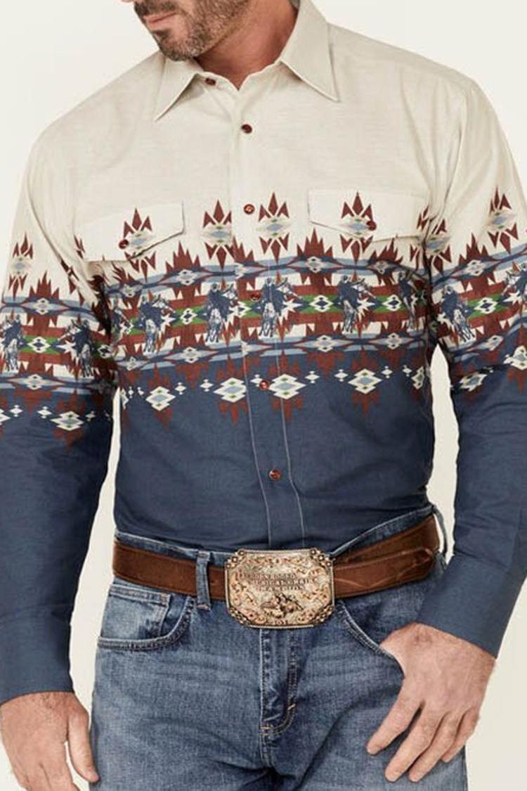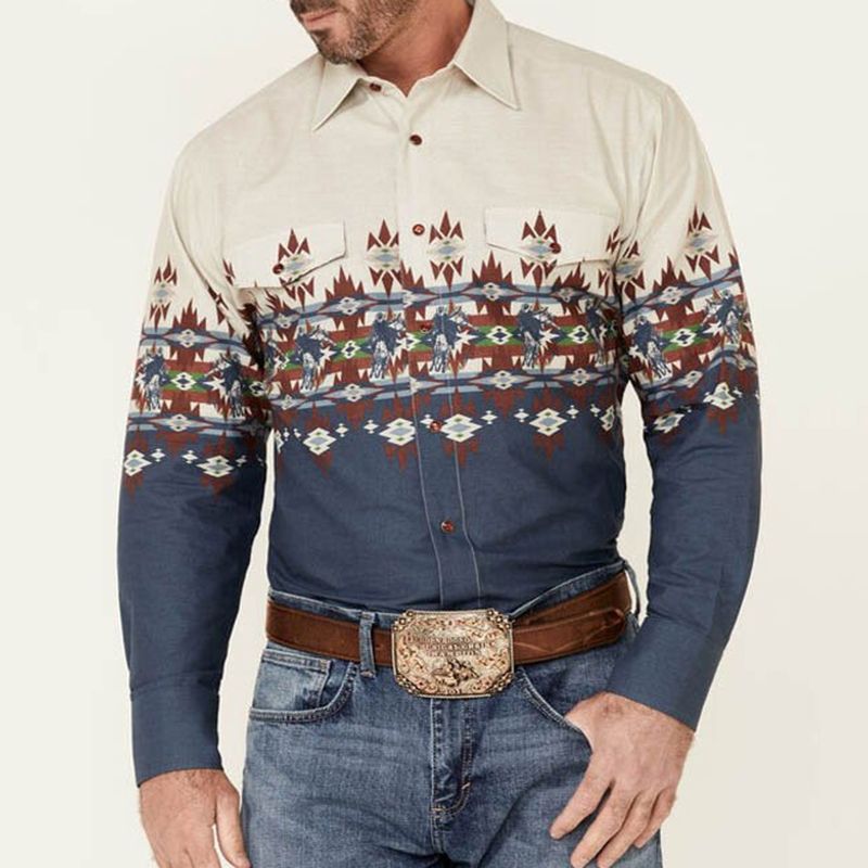 Men's Vintage Western Print Shirt
