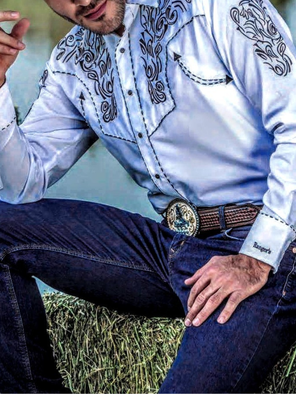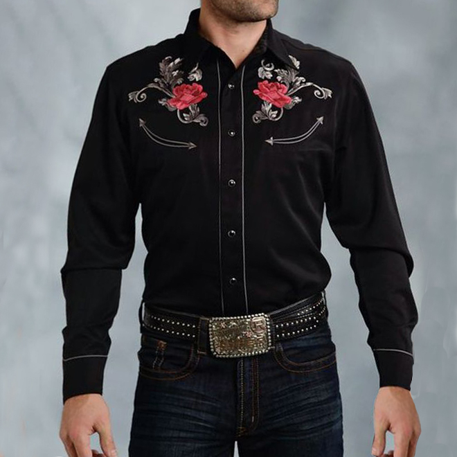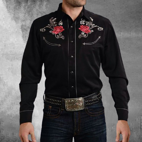 Mens Western Retro Embroidered Shirt