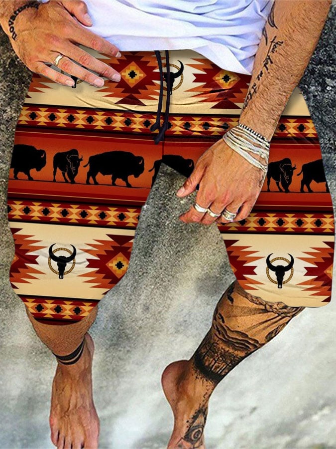 Men's Vintage Western Aztec Print Casual Shorts