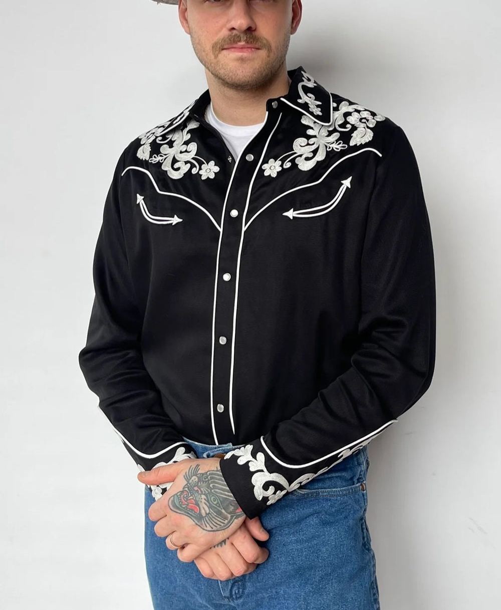 Men's Black Western Casual Vintage Lapel Long Sleeve Shirt