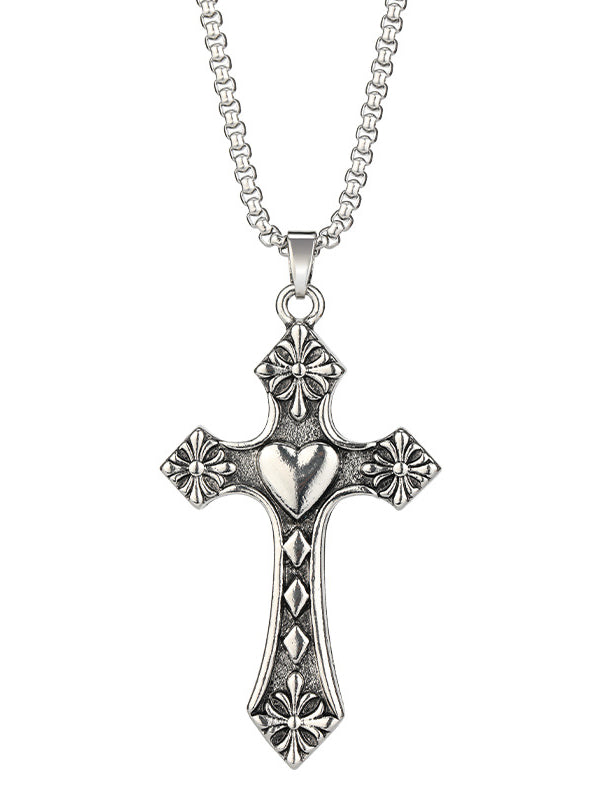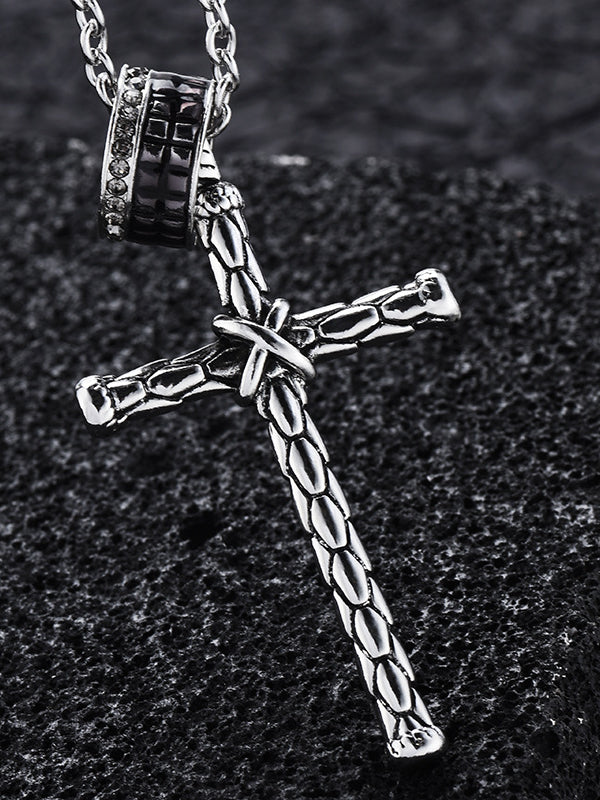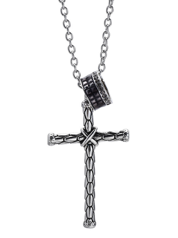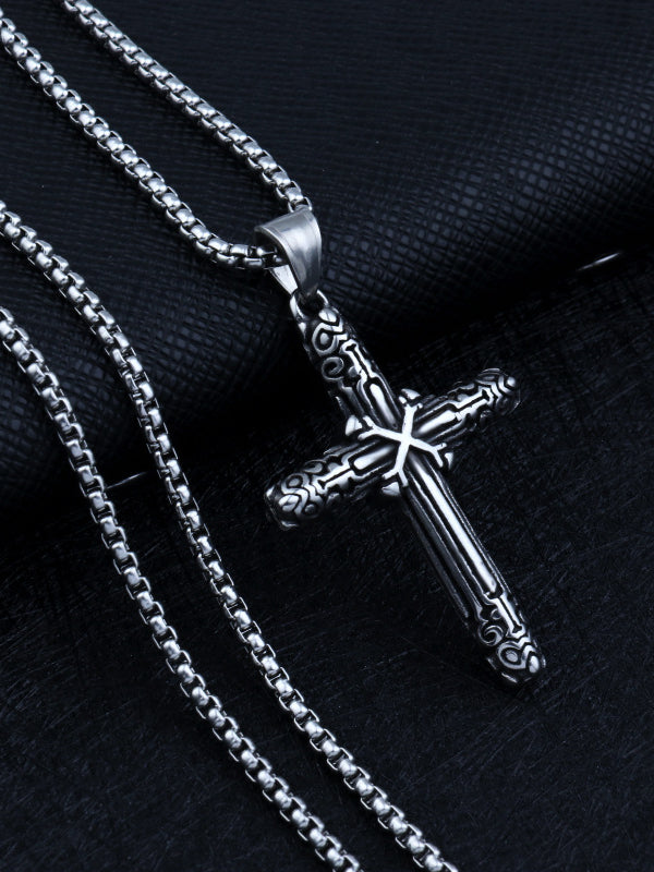 Stainless Steel Personality Casual Cross Long Pendant Necklace
