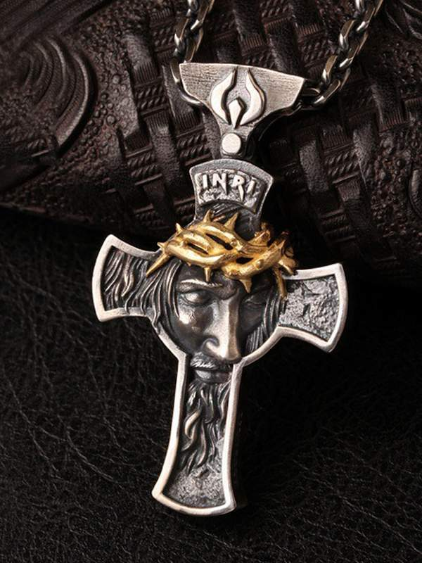 Bicolor Vintage Crown of Thorns Cross Necklace