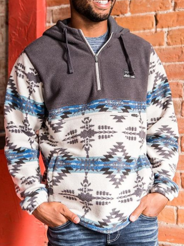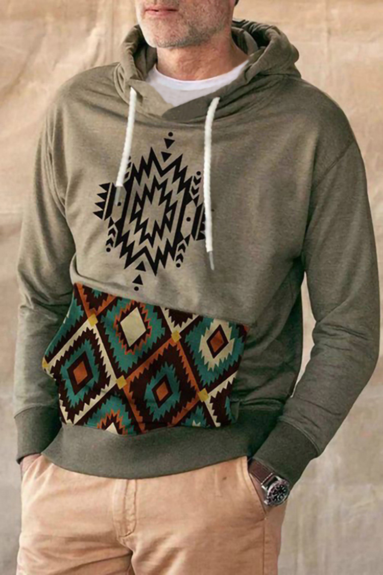 Men's Casual Western Tribal Print Patchwork Hoodie