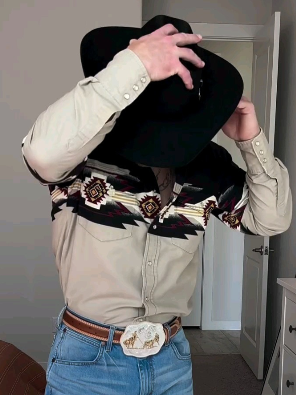 Men's casual vintage western long sleeve shirt