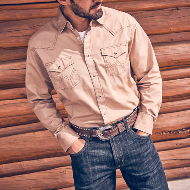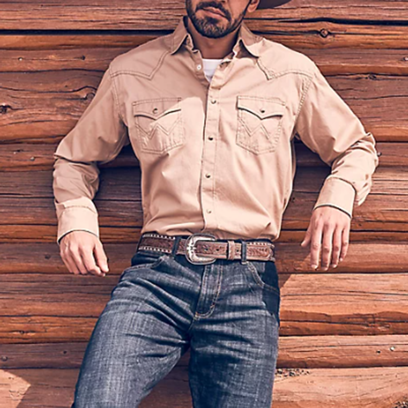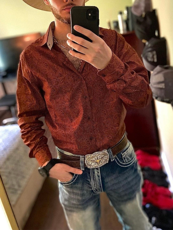 Men's Vintage Pink Western Casual Lapel Long Sleeve Shirt