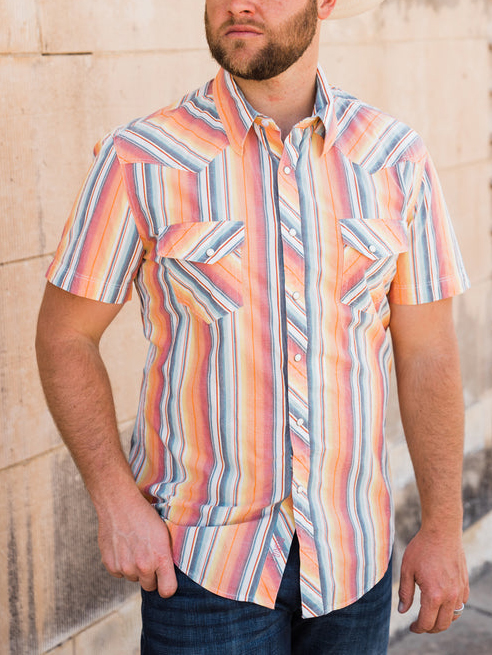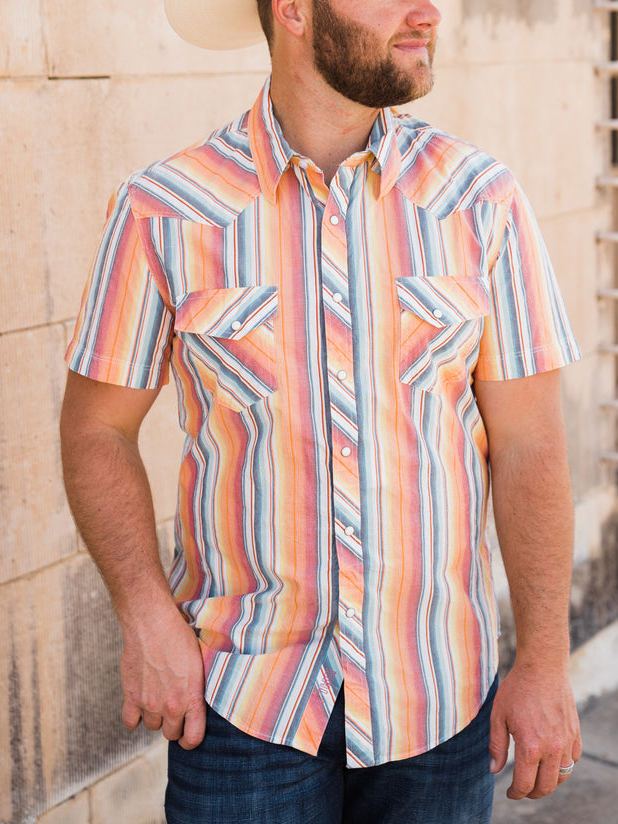 Men's Casual Retro Orange Striped Short Sleeve Shirt