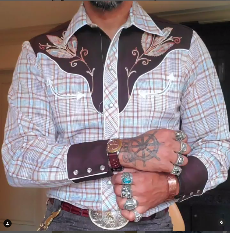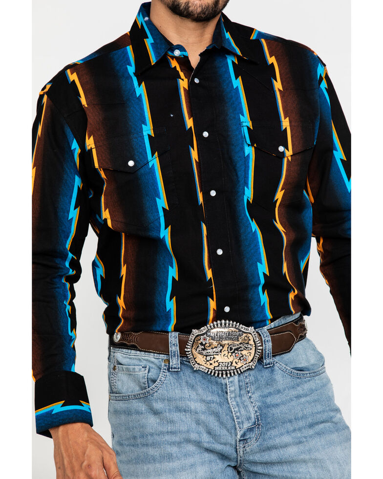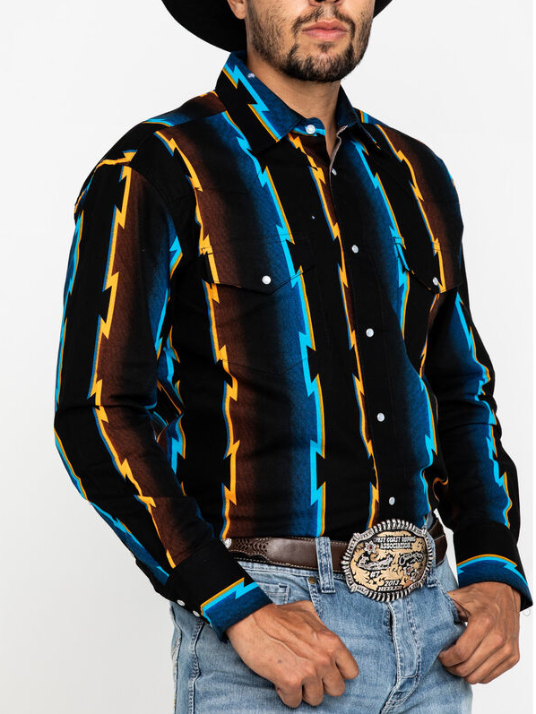 Rock and Roll Aztec Border Snap Long Sleeve Shirt
