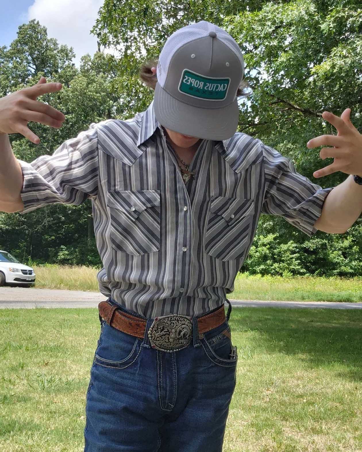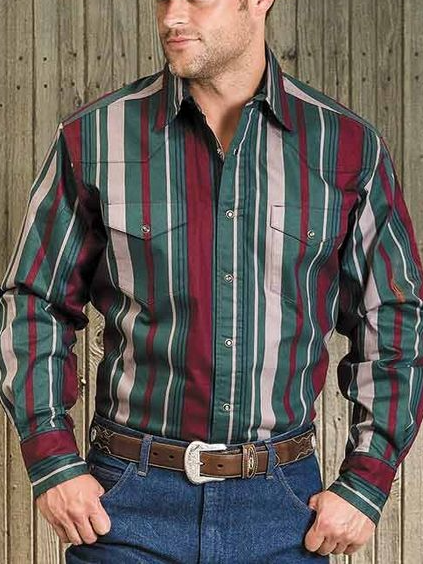 Men's Casual Western Purple Green Striped Long Sleeve Shirt
