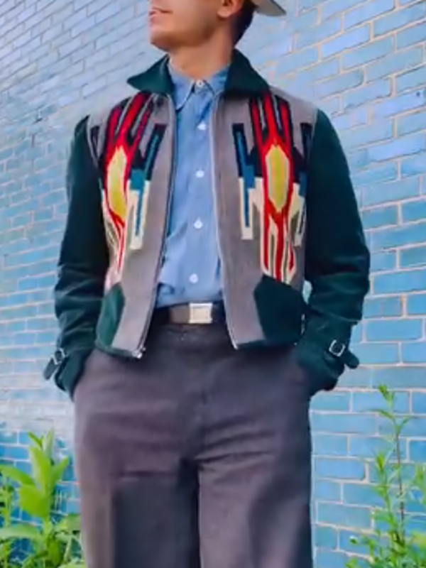 Men's Casual Western Gray Pink Striped Long Sleeve Shirt