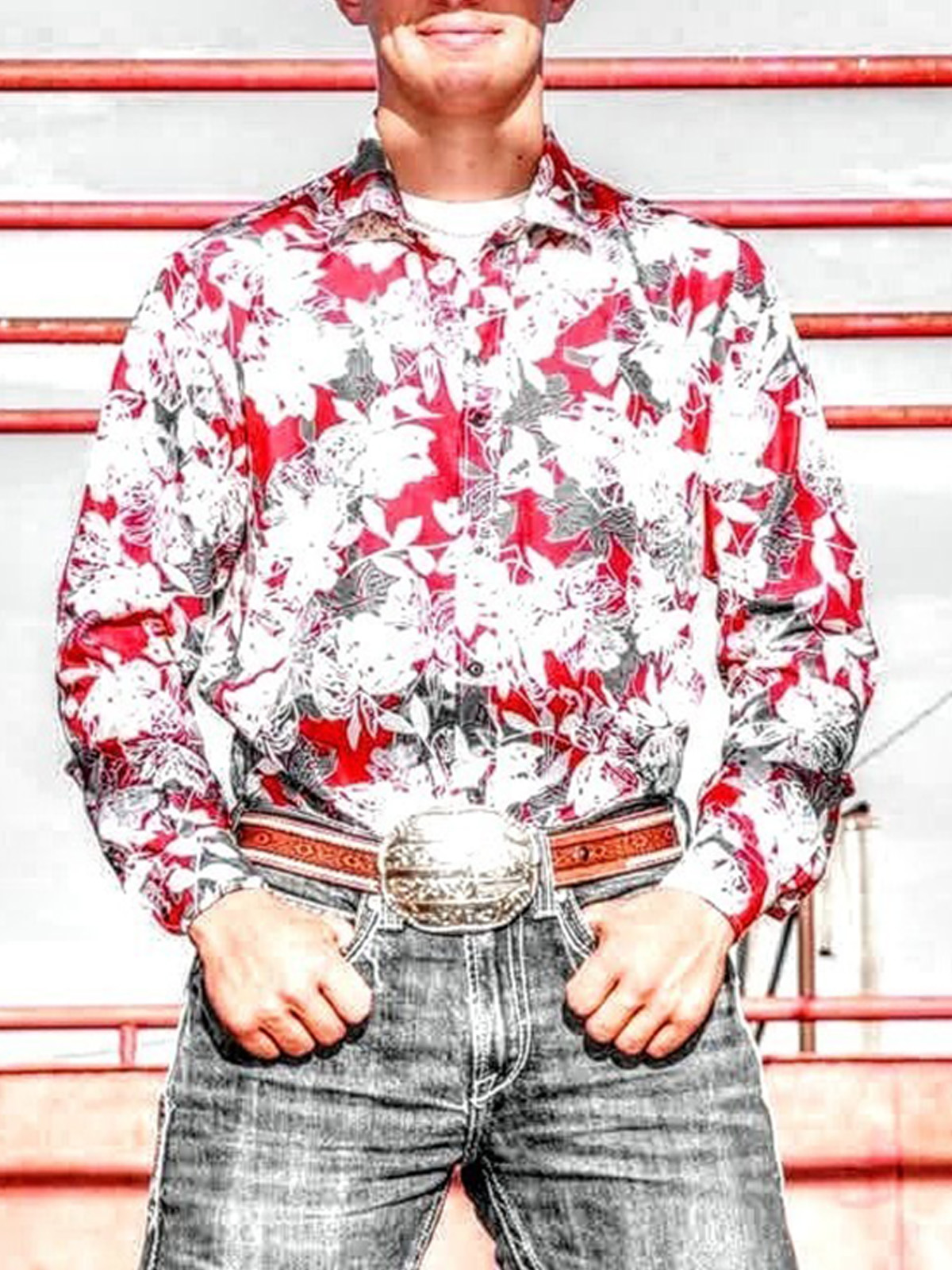 Men's Retro Floral Long Sleeve Shirt