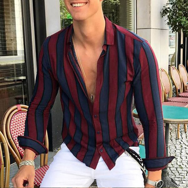 Pattern Type:StripedSleeve Type:Long SleeveElasticity:Slightly stretchyThickness:LightweightMaterial:Cotton-blend,LinenNeckline:Shirt CollarOccasion:DailyStyle:Casual