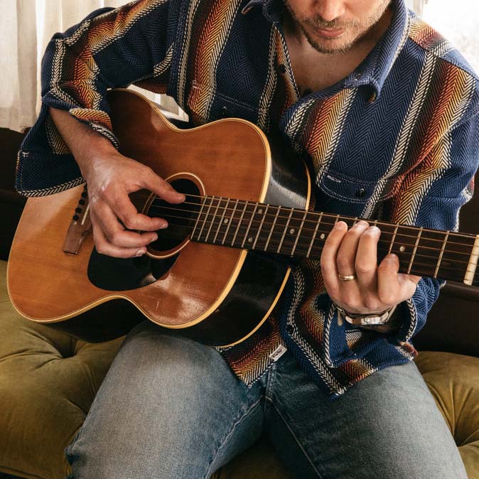 Men's Fashion Western Blue Orange Striped Long Sleeve Shirt