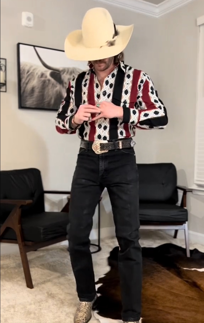 Men's Casual Retro Red and Blue Striped Long Sleeve Shirt