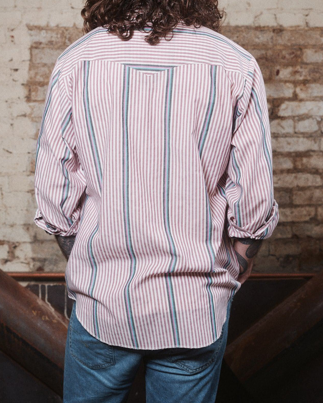 Men's Western Fashion Pink Striped Long Sleeve Shirt