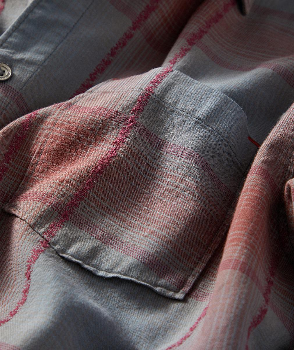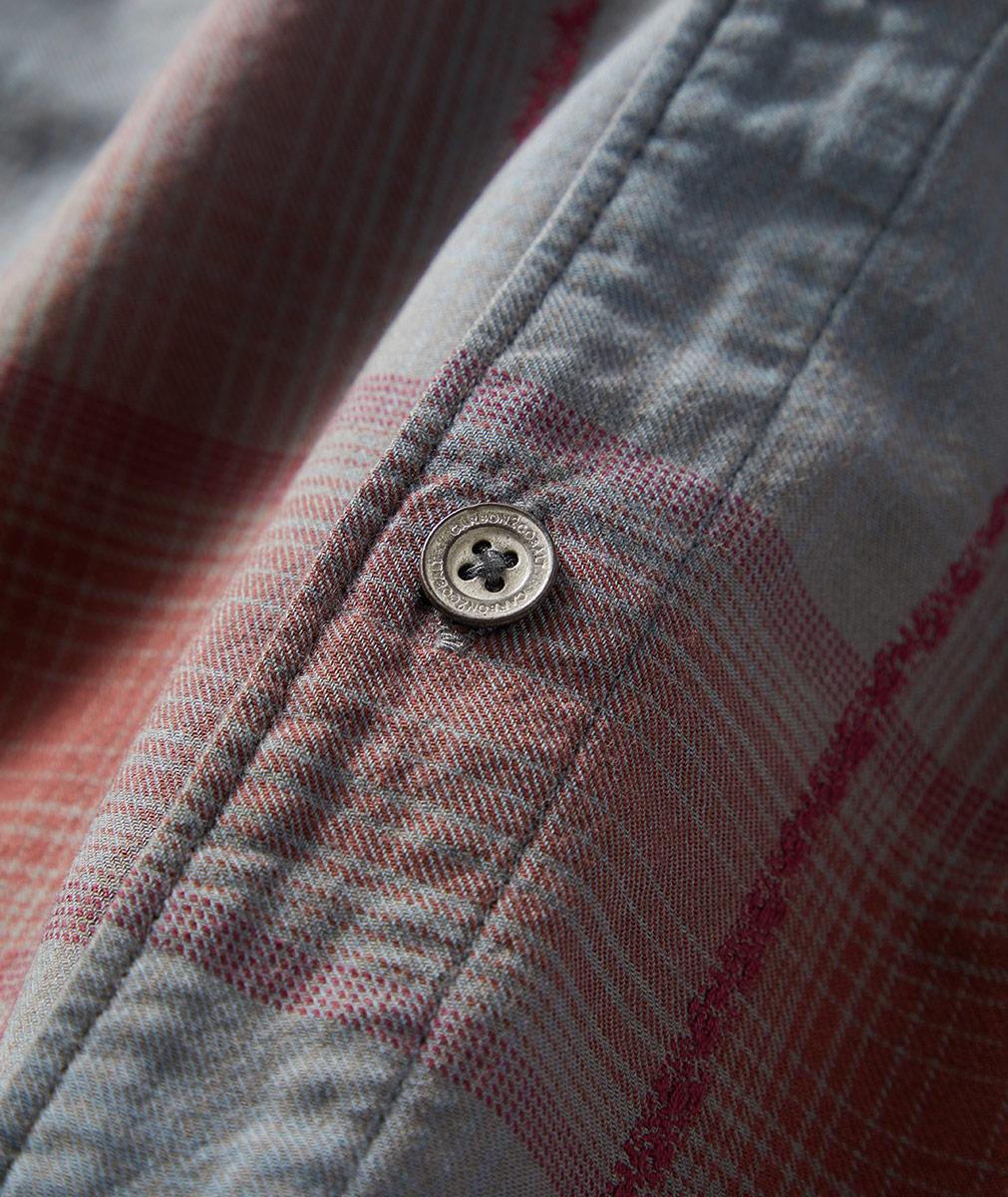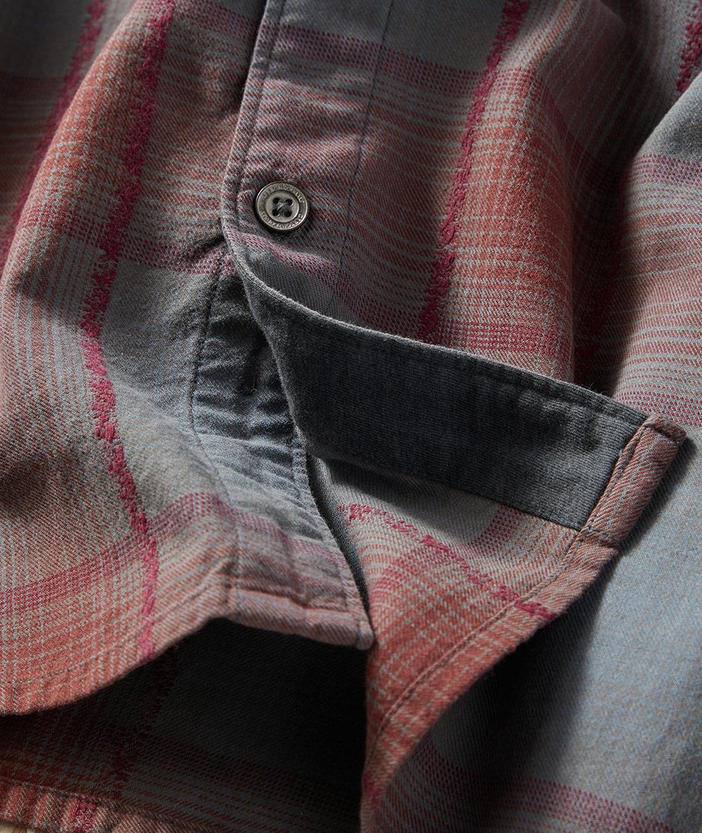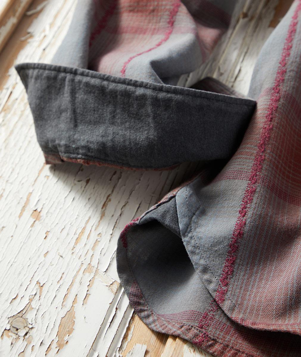 We're feeling fall with this plaid button down shirt featuring colors of smoky blue-gray and merlot accentuated with a textured vertical stripe for added intrigue.
