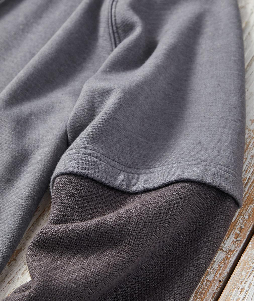 Channel those more leisurely days of yore with this pullover hoodie with the coolest layered look. The soft slub jersey body is framed with contrast thermal-knit bottom sleeves and hood. Rib knit-trimmed crewneck, cuffs, and bottom hem. Kangaroo pocket.