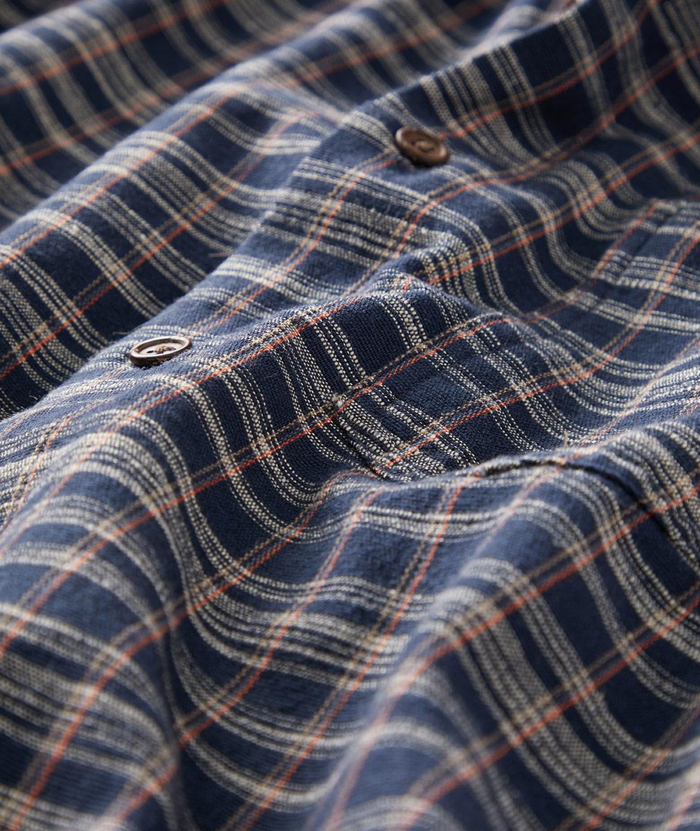 Inspired by a beloved vintage find, this is a plaid button down shirt with a little bit of tooth and texture. The handsome blue palette will play well with pants of all sorts, and the more substantial drape will make it great worn solo or layered over a tee.