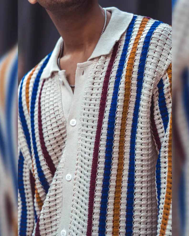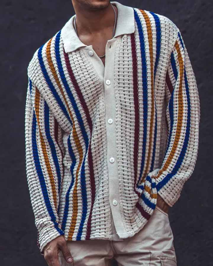 Men's Casual Striped Printed Long Sleeve Knitted Sweater Jacket