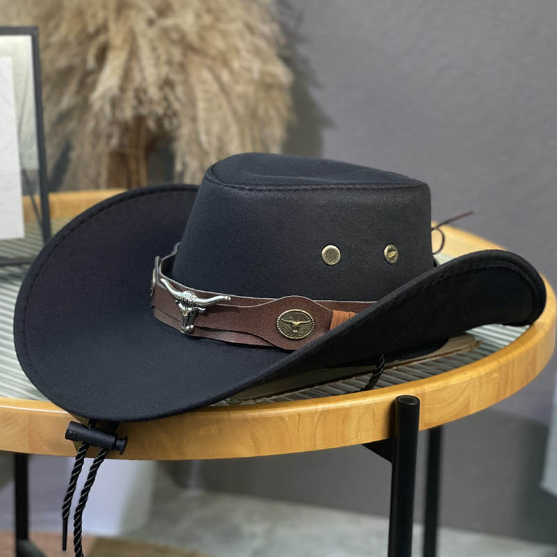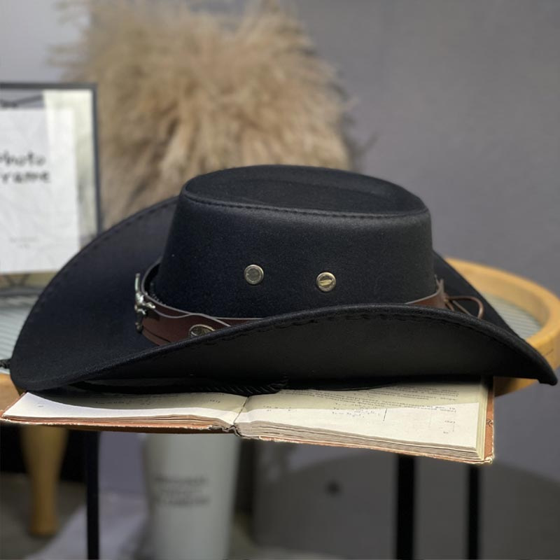 Jazz hat outdoor sun protection woolen hat black western cowboy hat