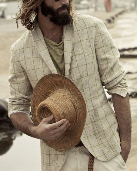 Men's Casual Green Square Plaid Print Western Long Sleeve Jacket Blazer