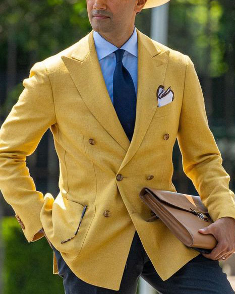 Men's Western Casual Yellow Long Sleeve Jacket Blazer