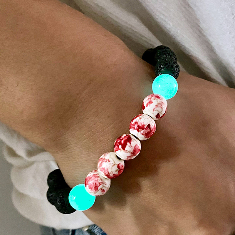 Blood-stained horror luminous volcanic stone bracelet skull bracelet