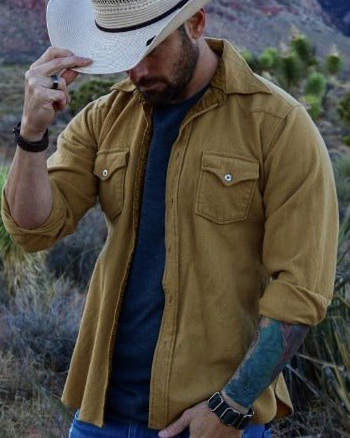Men's Western Yellow Pocket Casual Retro Long Sleeve Lapel Shirt