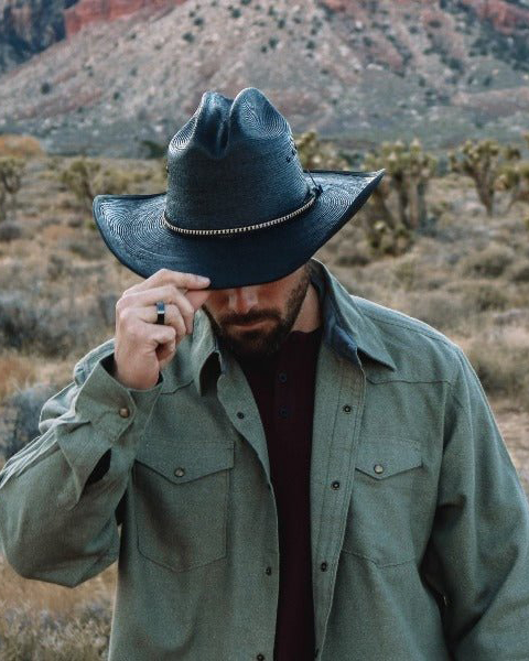Men's Western Green Pocket Casual Vintage Long Sleeve Lapel Shirt